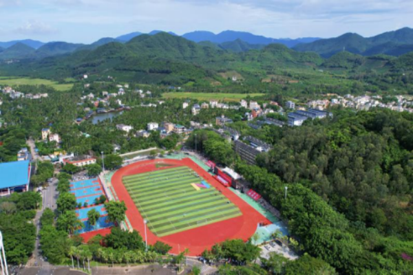 運(yùn)動(dòng)的身影在綠蔭草坪和紅色跑道上相交織,