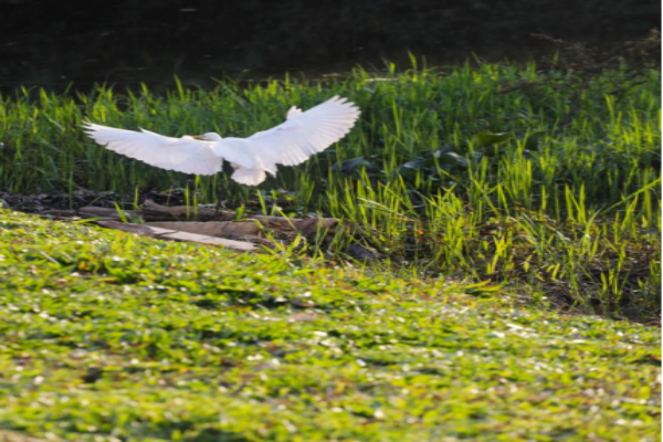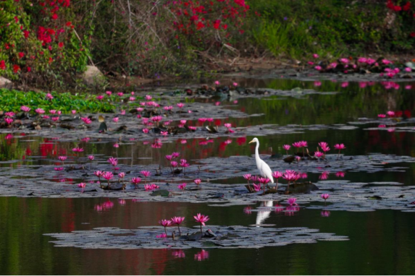 碧綠的荷葉陪伴著等待白鷺的紅蓮。