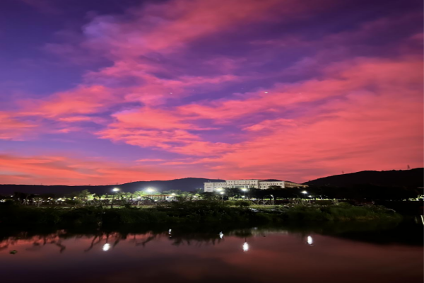 傍晚走在白鷺溪側(cè),一廊橋架于溪上,與遠(yuǎn)處的落筆峰交相輝映,橫豎之間,是三亞學(xué)院數(shù)不盡的風(fēng)景,道不完的美麗。這座廊橋仿佛“臥波”于白鷺溪上,與周圍的自然景觀融為一體,形成了一幅絕美的畫卷。站在橋上,可以欣賞到遠(yuǎn)處的落筆峰和腳下的清澈溪流,感受到自然與人文的和諧共生。