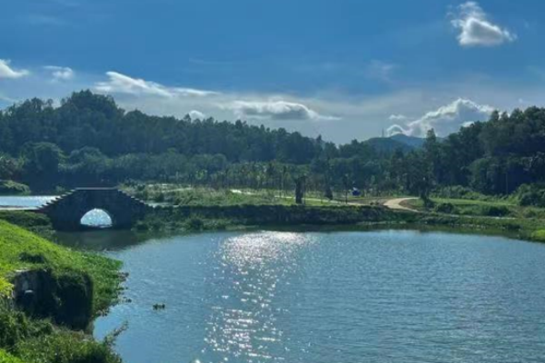 “任憑風浪起,穩(wěn)坐釣魚臺”,坐落于三亞學院凰家云水白鷺溪畔的釣魚臺,掩映在夏蔭中,聽潺潺流水,聞陣陣花香。
