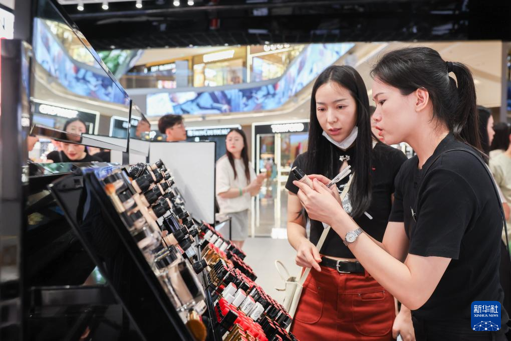 消費(fèi)者在海南三亞國際免稅城選購商品。新華社記者 張麗蕓 攝