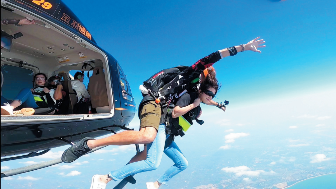 張恩銘還發(fā)現(xiàn),前來體驗(yàn)的大多是年輕人?!?/span>2025年第一季度,基地接待旅客突破4000人次,其中21歲至35歲年輕人占比超80%,其中女性占60%?!彼f,針對年輕群體注重儀式感的特點(diǎn),該基地還推出“情侶雙人跳傘”“畢業(yè)紀(jì)念跳傘”等特色服務(wù),讓跳傘不僅是一次冒險(xiǎn),更能成為值得珍藏的美好回憶。