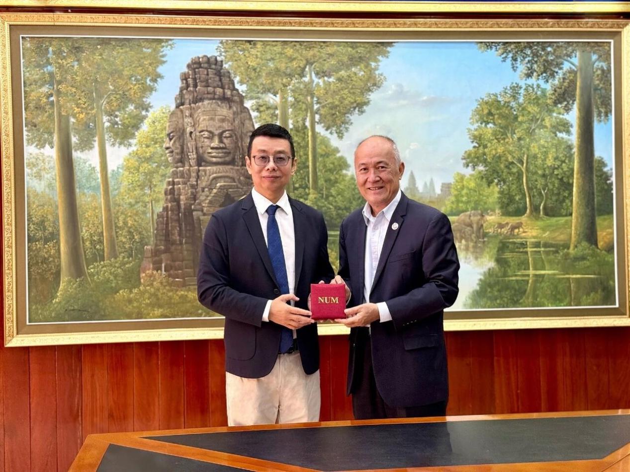 柬埔寨國立管理大學(xué)校長Dr. Hor Peng對陸丹博士一行的到來致以熱烈歡迎。他表示,柬埔寨國立管理大學(xué)立足商科、始終以創(chuàng)新驅(qū)動發(fā)展,該校2022年首次入圍WURI全球創(chuàng)新大學(xué)百強(第95位),是當(dāng)年柬埔寨唯一入選高校。在人工智能時代背景下,學(xué)校正通過整合優(yōu)質(zhì)教育資源、深化前沿學(xué)術(shù)研究,積極助力柬埔寨社會轉(zhuǎn)型。柬埔寨國立管理大學(xué)校長Dr. Hor Peng高度認(rèn)同吉利教育“三個校園”理念及芯位教育在AI教育領(lǐng)域的創(chuàng)新實踐,并期待與吉利人才發(fā)展集團(tuán)及芯位教育建立長期戰(zhàn)略合作關(guān)系,共同推進(jìn)教育國際化進(jìn)程。