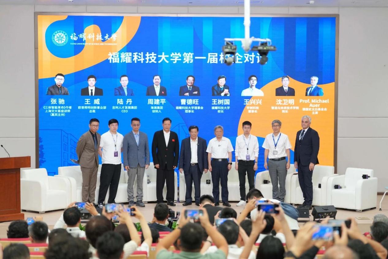 在校企對(duì)話環(huán)節(jié),陸丹博士與福耀科技大學(xué)理事會(huì)理事長(zhǎng)曹德旺、校長(zhǎng)王樹(shù)國(guó)、智造與未來(lái)技術(shù)學(xué)院院長(zhǎng)沈衛(wèi)明、宇樹(shù)科技創(chuàng)始人王興興、海瀾集團(tuán)創(chuàng)始人周建平、歐普照明創(chuàng)新事業(yè)部王威等企業(yè)界、教育界人士,圍繞“構(gòu)建新時(shí)代校企合作新生態(tài)”主題,就校企合作模式、高校教學(xué)改革、企業(yè)需求對(duì)接等問(wèn)題展開(kāi)了深入討論。