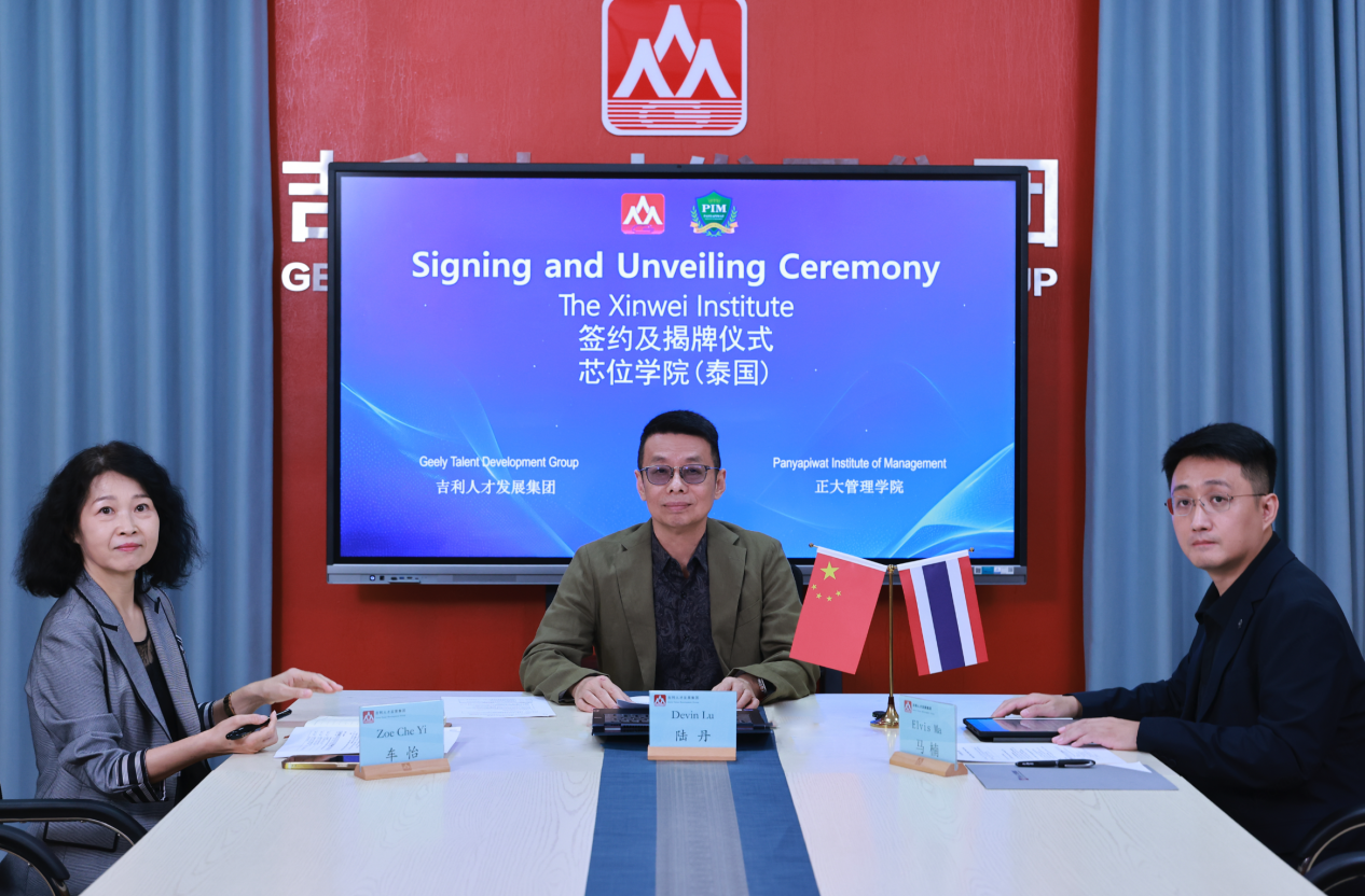 2025年9月15日,吉利人才發(fā)展集團(tuán)與泰國正大管理學(xué)院以線上線下聯(lián)動方式,舉行“芯位學(xué)院”簽約及揭牌儀式。繼今年5月與泰國博仁大學(xué)成功合作后,這是“芯位學(xué)院”在泰國再度落子,標(biāo)志著吉利“三個校園”(跨區(qū)、跨界、跨線)教育模式得到東盟地區(qū)的積極協(xié)同,也彰顯出雙方對AI時代教育無限可能的高度共識與攜手開拓的共同決心。