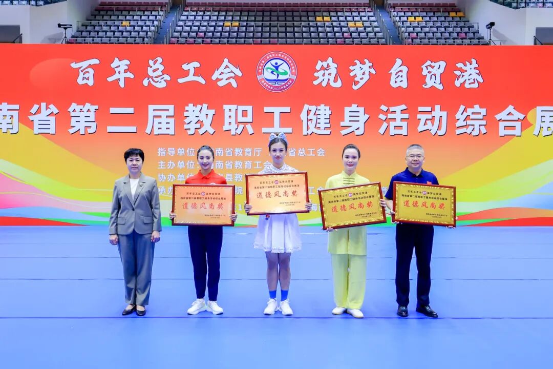 10月24日-26日,海南省第二屆教職工健身活動(dòng)綜合展演在三亞學(xué)院書(shū)藝館綜合體育館成功舉行。三亞學(xué)院教職工太極代表隊(duì)?wèi){借行云流水、剛?cè)岵?jì)的精彩演繹,榮獲高校組太極項(xiàng)目一等獎(jiǎng)和道德風(fēng)尚獎(jiǎng),作為承辦方,還獲頒“特殊貢獻(xiàn)獎(jiǎng)”,本次賽事充分展現(xiàn)了三亞學(xué)院教職工專業(yè)進(jìn)取精神與勠力同心的精神風(fēng)貌,為學(xué)校贏得了榮譽(yù)。