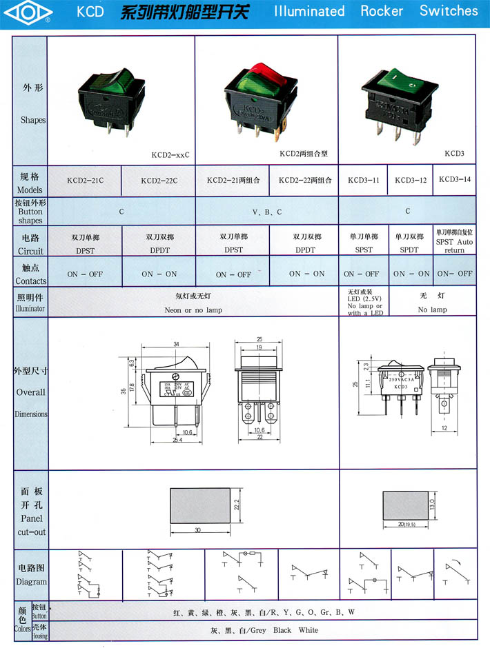 - KCD系列帶燈船型開關