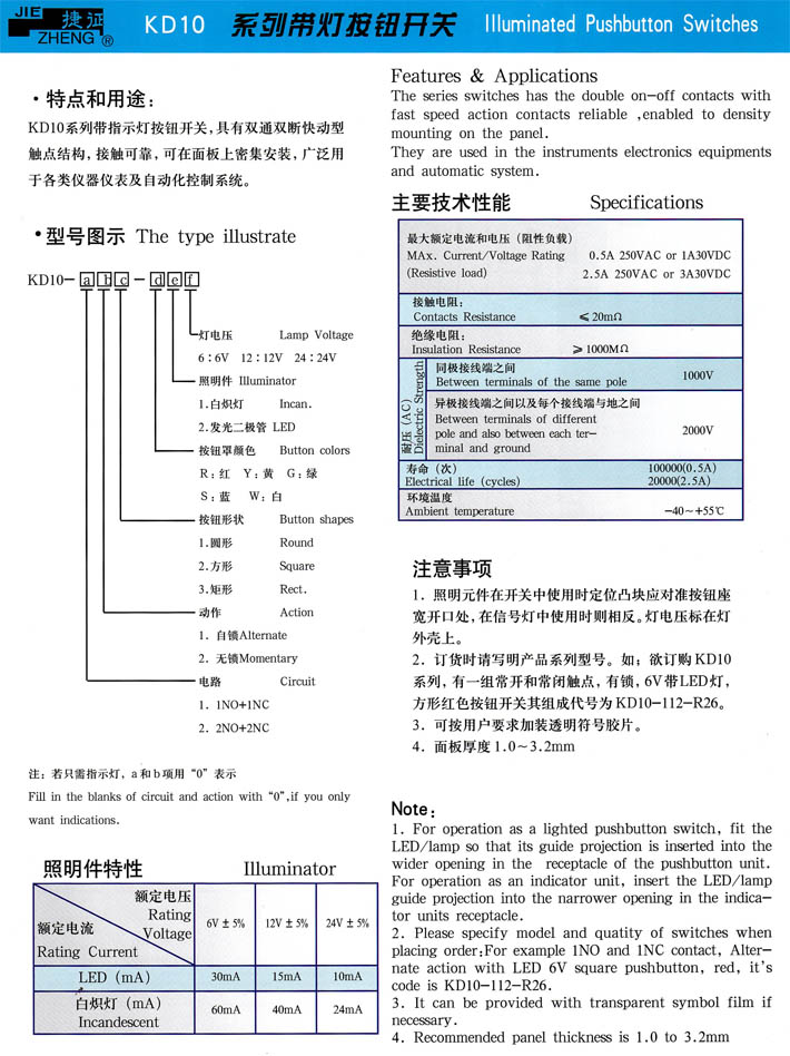 • KD10系列帶燈按鈕開關 產品型號:KD10系列帶燈按鈕開關